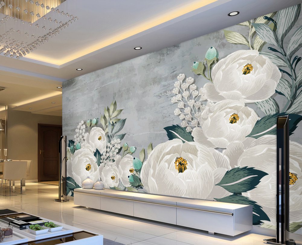 Carta da parati peonie bianche di mezzanotte (articolo pb1139 ) da categoria Carta da parati Fiori 3D