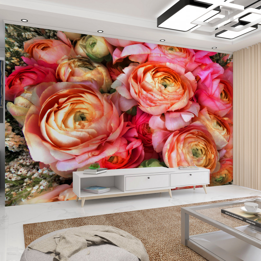 Carta da parati boccioli di fiori fatti di pietre rosse e perle