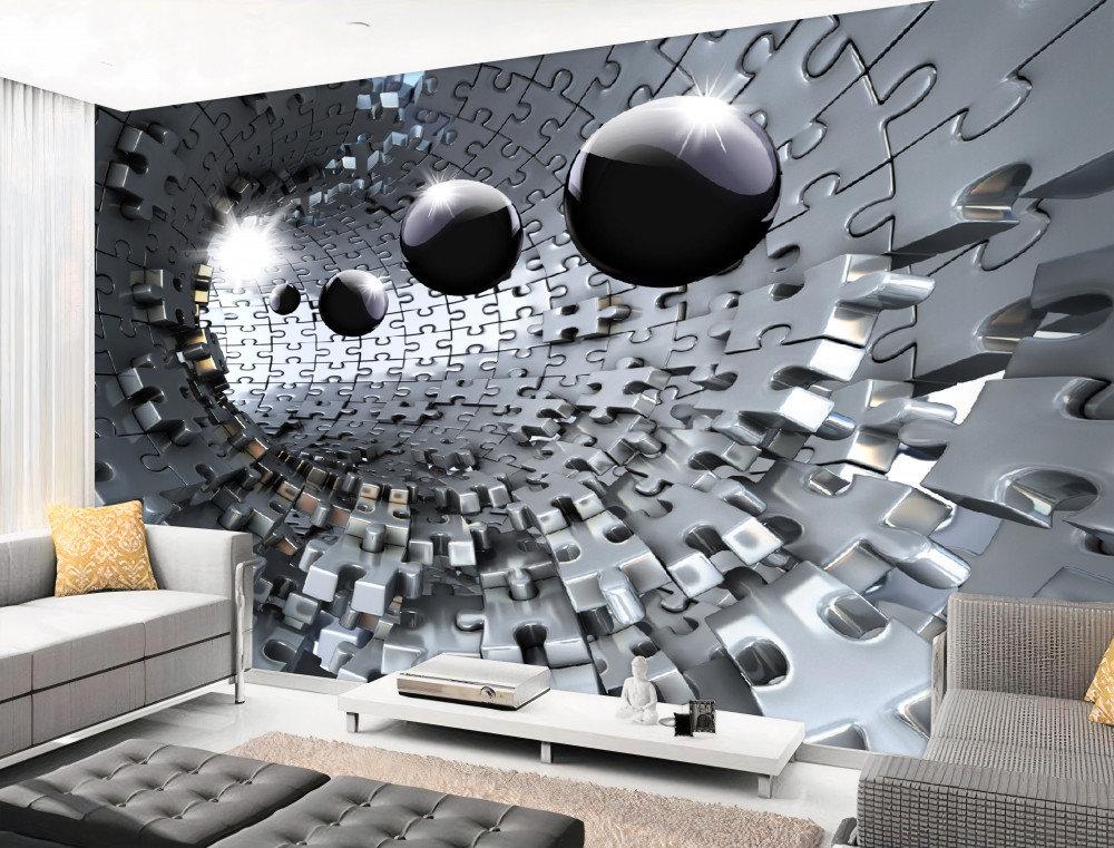 Carta da parati palline nere che scivolano via in prospettiva (articolo a91556 ) da categoria Carta da parati Tunnel 3D