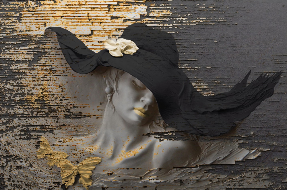 Carta da parati ragazza in un berretto con fiori (articolo a93304 ) da categoria Carta da parati 3D