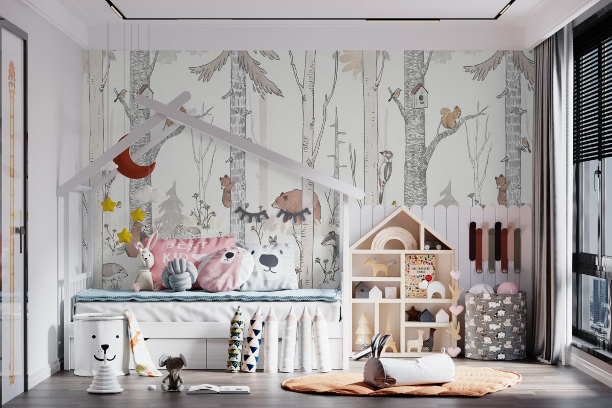 Carta da parati Gli abitanti della foresta si fanno gli affari propri (articolo a98174 ) da categoria Carta da parati per Bambini