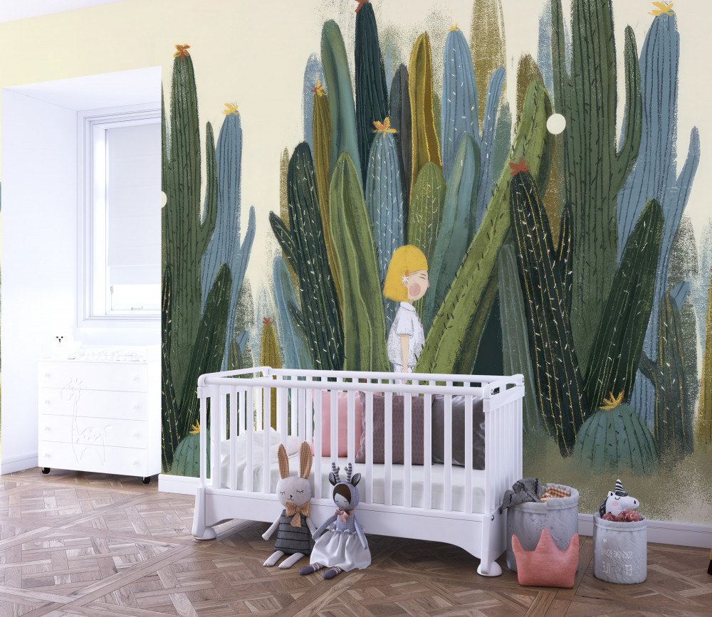 Carta da parati ragazza dai capelli rossi in cactus (articolo a91643 ) da categoria Carta da parati Per un ragazzo
