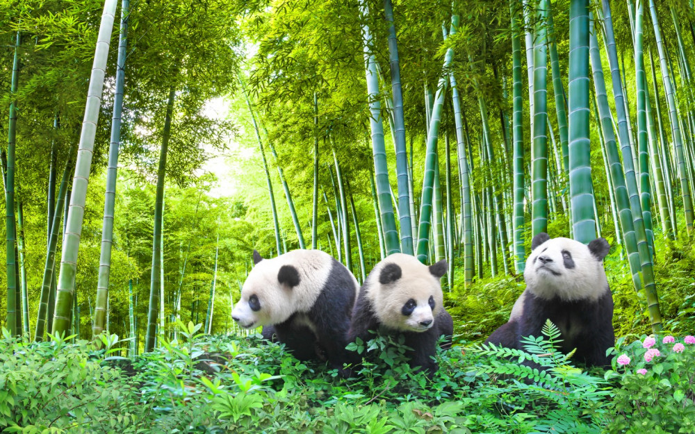 Carta da parati tre panda nella foresta