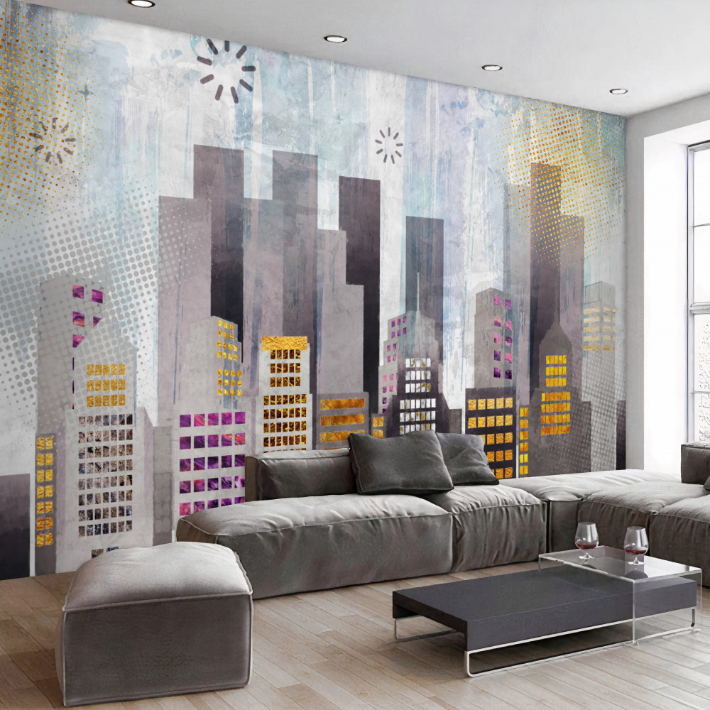 Carta da parati riflesso dei grattacieli della città nell'acqua