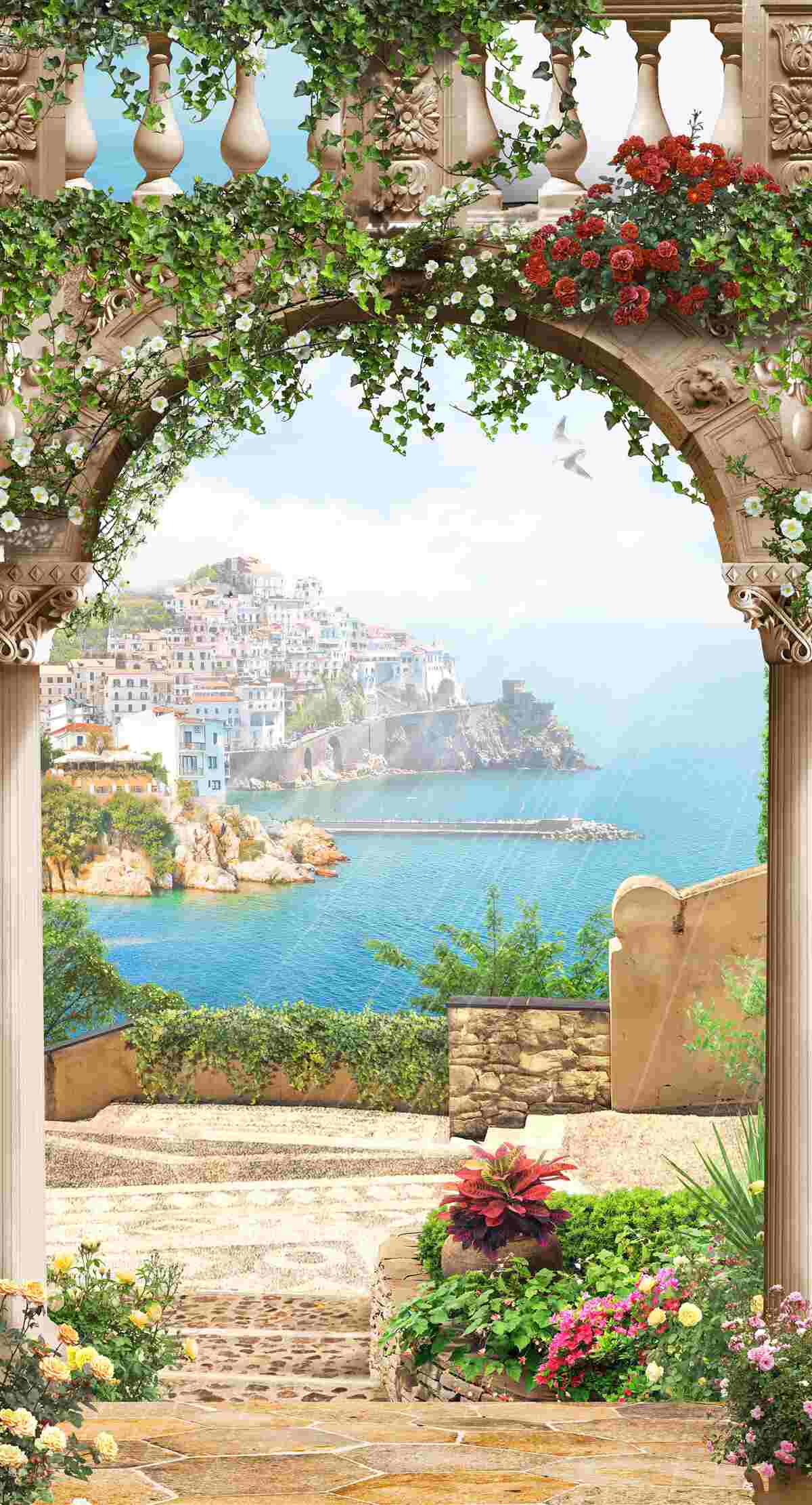 Carta da parati incantevole vista dal balcone sul mare e sulla città