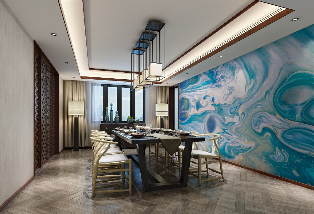 Carta da parati Montagne astratte e uccelli nella nebbia